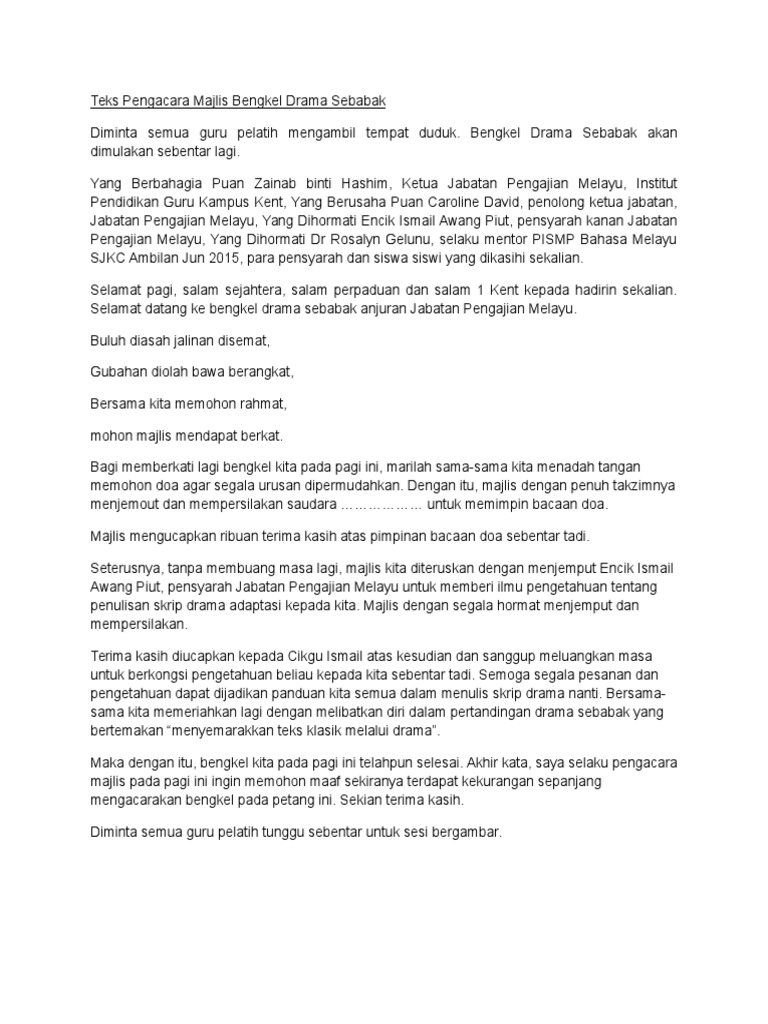 Teks Pengacara Majlis Bengkel Drama Sebabak Pdf